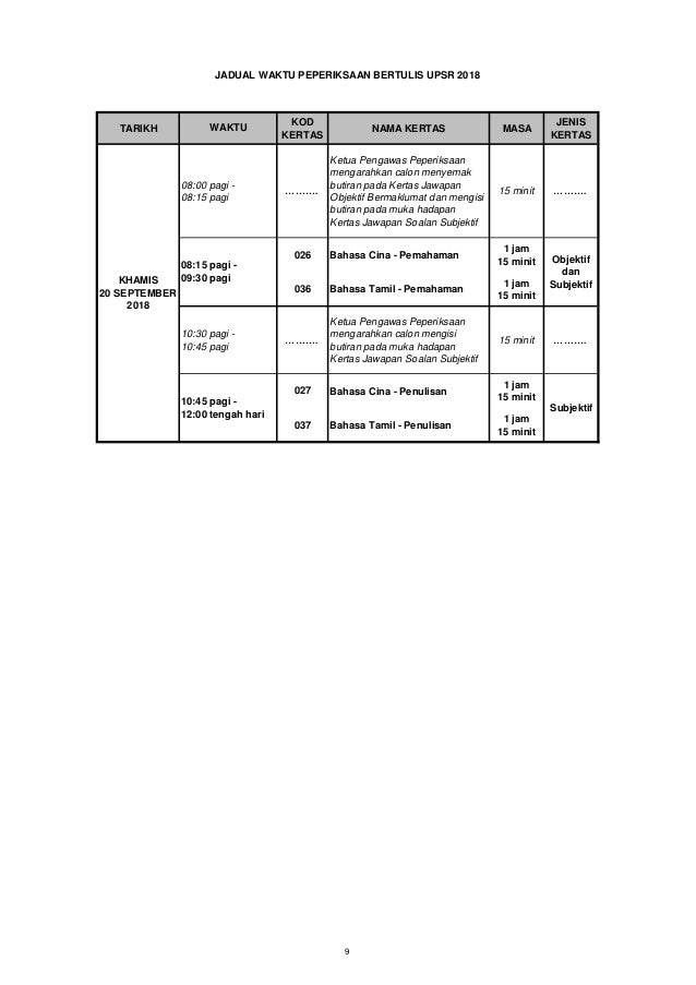 Jadual Waktu Upsr 2018 via www.slideshare.net